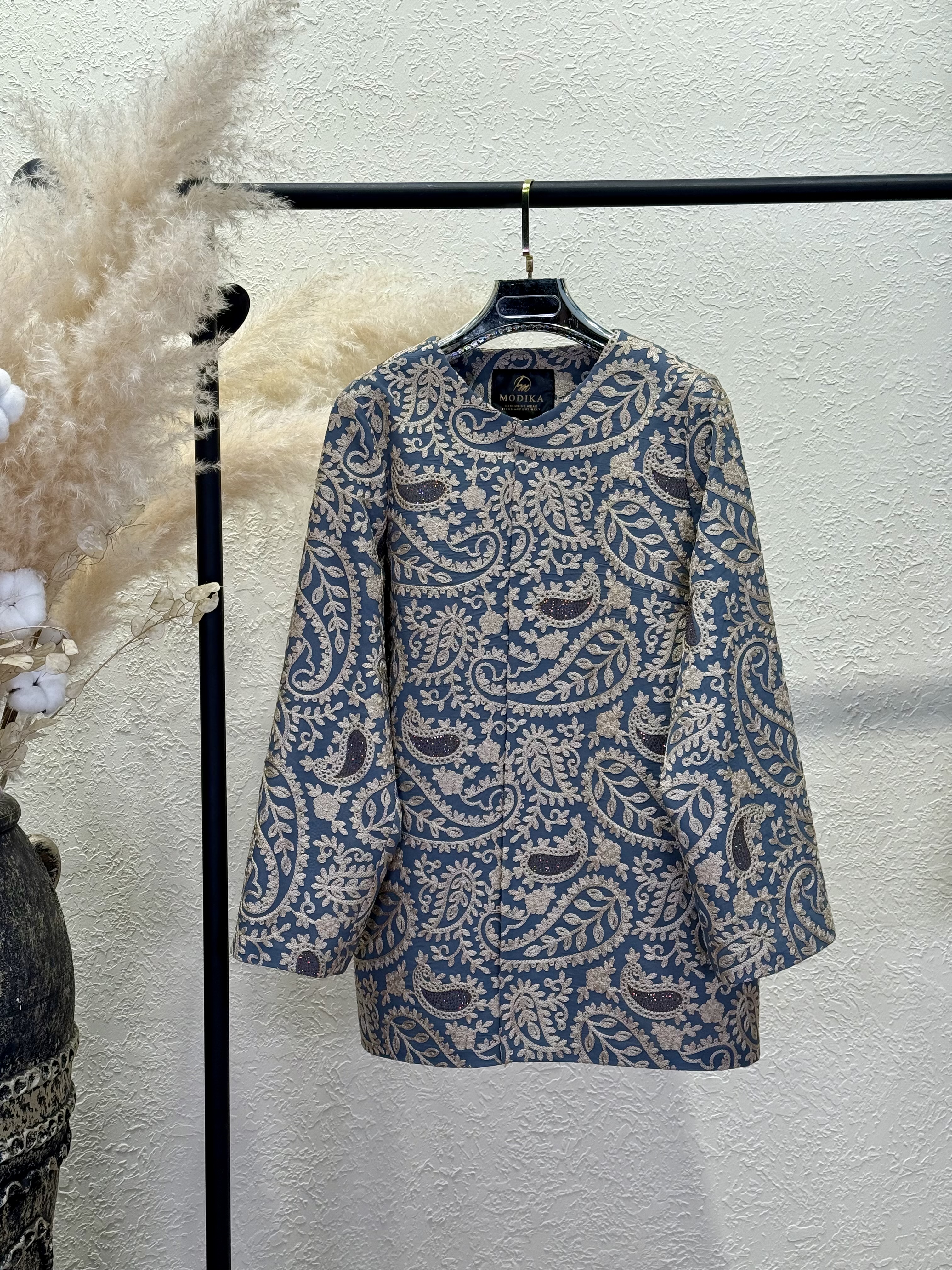 • موجود در دو سایز1( 38-44) و سایز 2 (46-50) • قدکار 70 • بیس کار کرپ حریر سوزندوزی • داخل کار لایی کشیشده